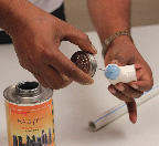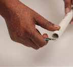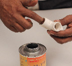 Mark the pipe length to be inserted for jointing. Apply a liberal coat of solvent cement with the help of the brushon the marked surface.